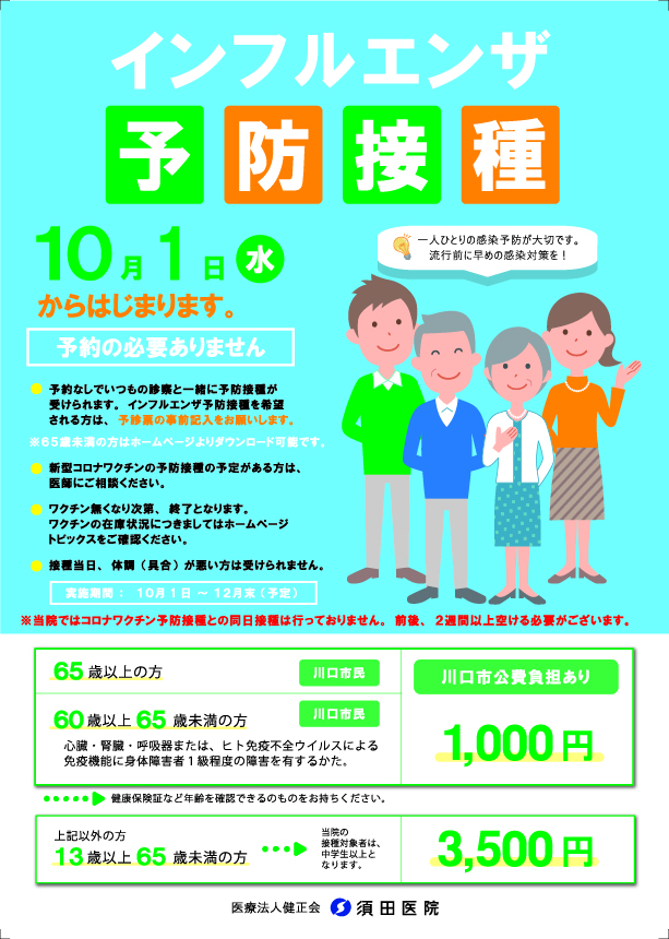 ※当院では新型コロナワクチンとインフルエンザ予防接種の同時接種は行っておりません。